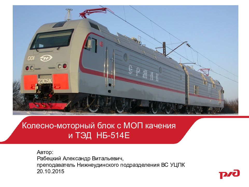 Колесно-моторный блок с МОП качения и ТЭД НБ-514Е Автор: Рабецкий Александр Витальевич, преподаватель Нижнеудинского подразделения ВС УЦПК 20.10.2015