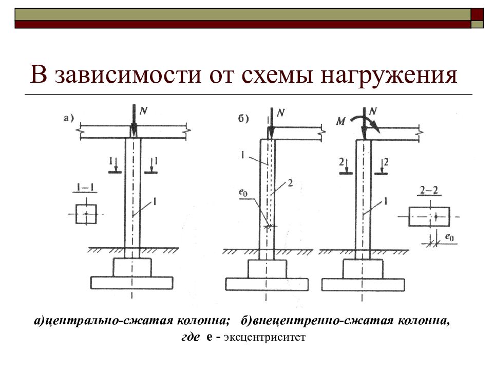 а)центрально-сжатая колонна; б)внецентренно-сжатая колонна, где е - эксцентриситет -