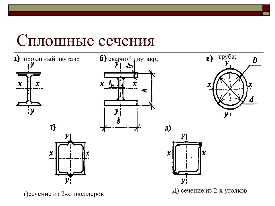г)сечение из 2-х швеллеров прокатный двутавр сварной двутавр; труба; Д) сечение из 2-х уголков