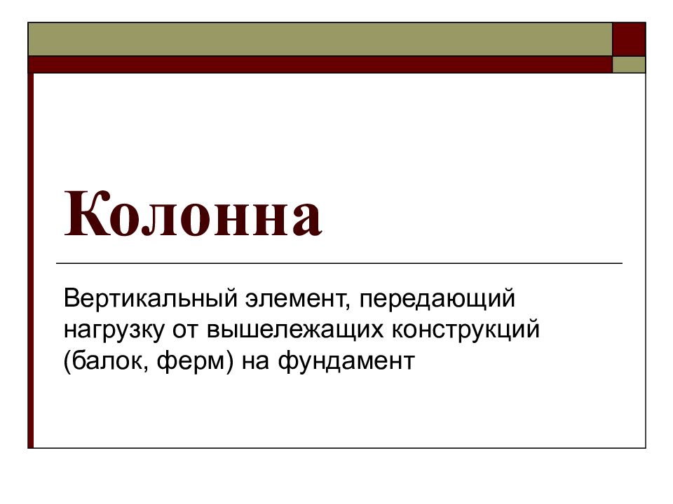 Вертикальный элемент, передающий нагрузку от вышележащих конструкций (балок, ферм) на фундамент