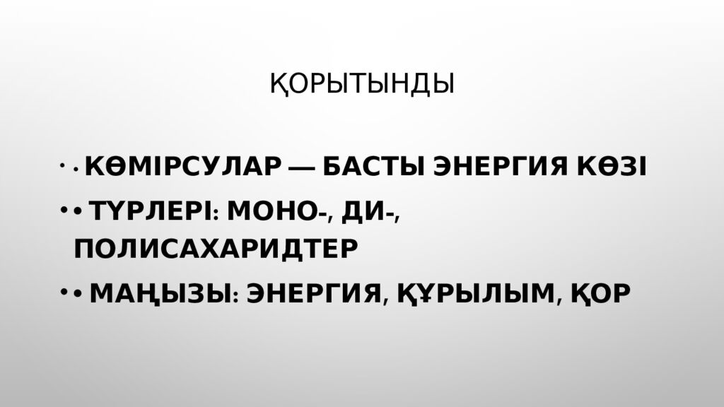 Слайд 2: Көмірсулар туралы жалпы түсінік