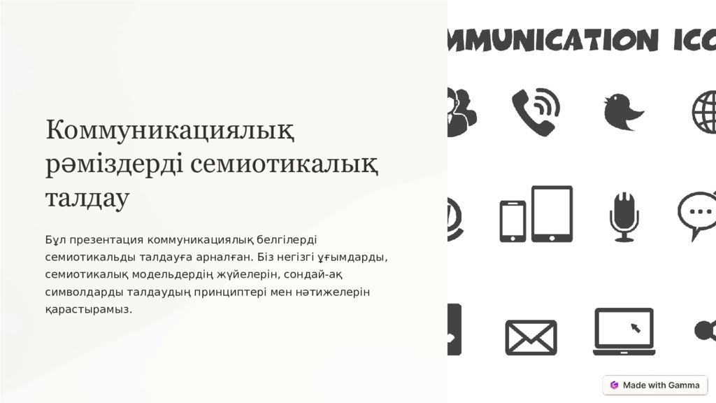 Последний слайд презентации: Коммуникациялық рәміздерді семиотикалық талдау Бұл презентация коммуникациялық