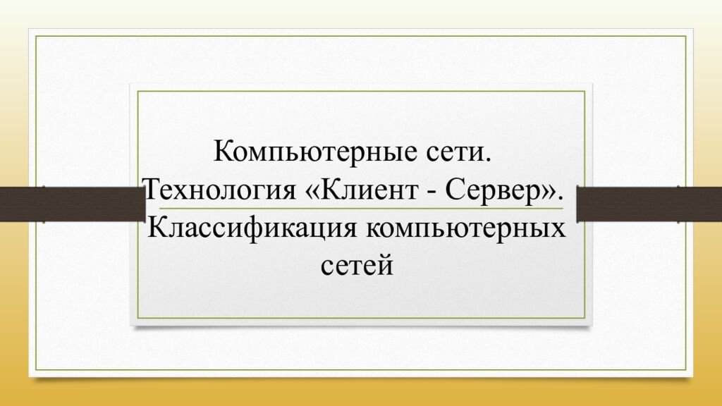Первый слайд презентации: Компьютерные сети. Технология «Клиент - Сервер». Классификация компьютерных сетей