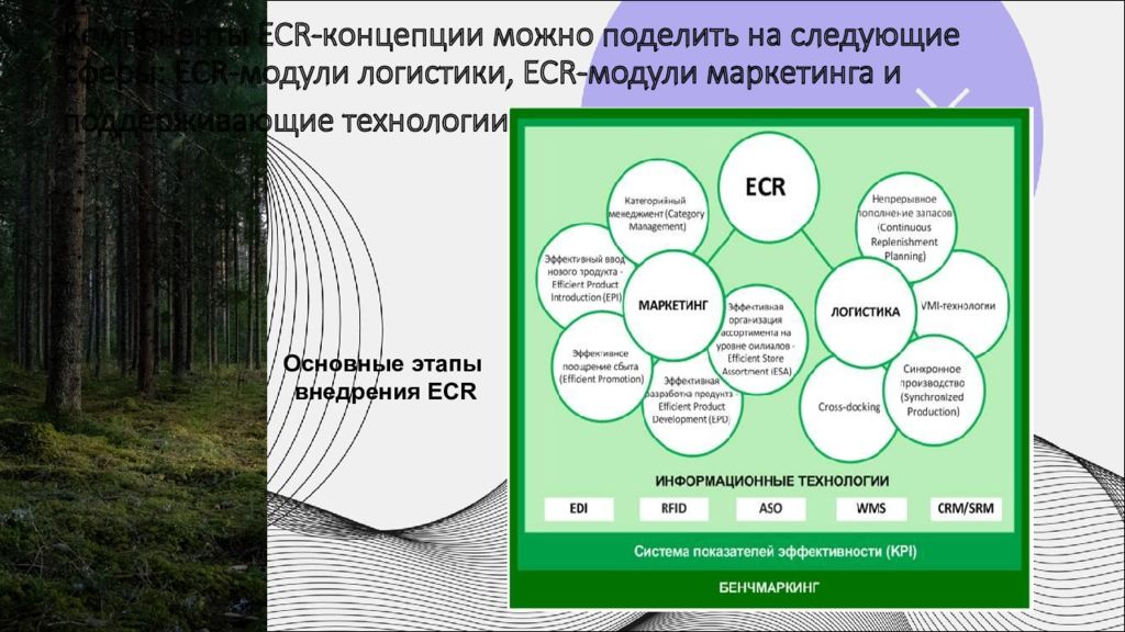 Слайд 7: Компоненты ECR-концепции можно поделить на следующие сферы: ECR-модули логистики, ECR-модули маркетинга и поддерживающие технологии и инструменты