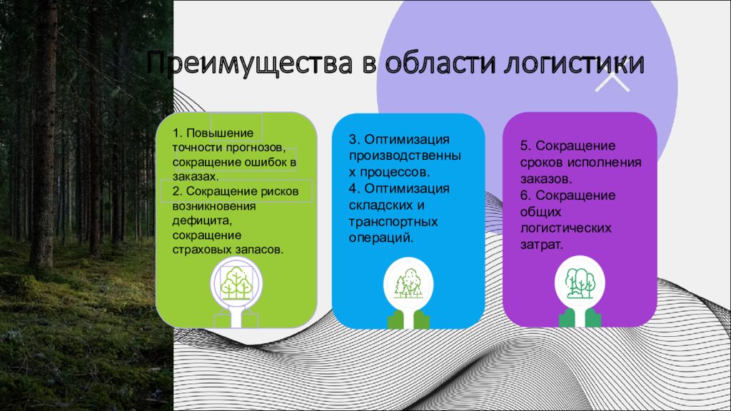 1. Повышение точности прогнозов, сокращение ошибок в заказах. 2. Сокращение рисков возникновения дефицита, сокращение страховых запасов. 3. Оптимизация производственных процессов. 4. Оптимизация складских и транспортных операций. 5. Сокращение сроков исполнения заказов. 6. Сокращение общих логистических затрат.