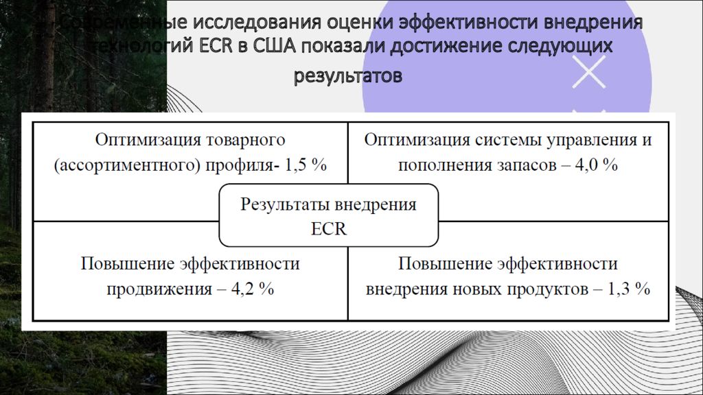 Слайд 5: Современные исследования оценки эффективности внедрения технологий ECR в США показали достижение следующих результатов