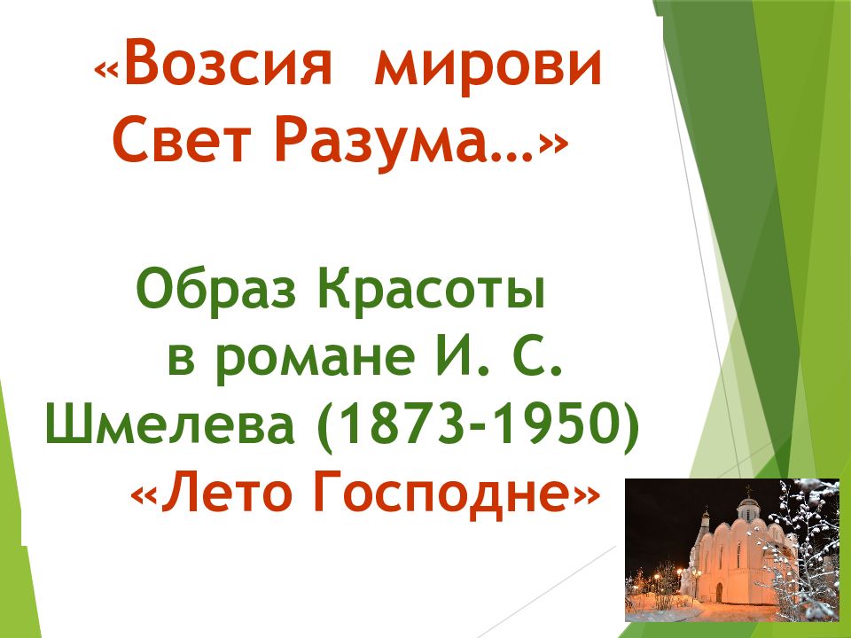 « Возсия мирови Свет Разума…» Образ Красоты в романе И. С. Шмелева (1873-1950) «Лето Господне»