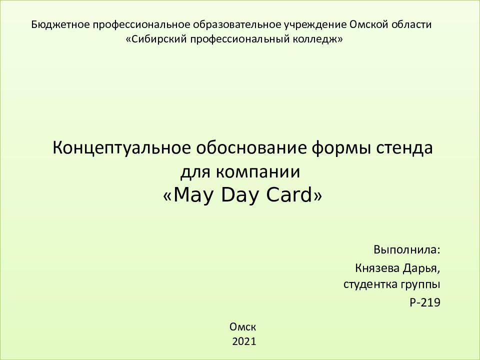 Первый слайд презентации: Концептуальное обоснование формы стенда для компании « May Day Card »