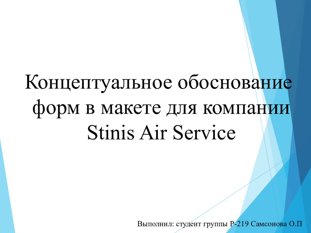 Концептуальное обоснование форм в макете для компании Stinis Air Service Выполнил: студент группы Р-219 Самсонова О.П
