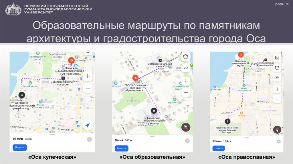 Слайд 5: Образовательные маршруты по памятникам архитектуры и градостроительства города Оса