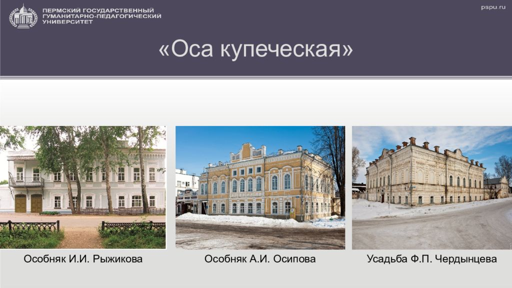 Особняк И.И. Рыжикова Особняк А.И. Осипова Усадьба Ф.П. Чердынцева