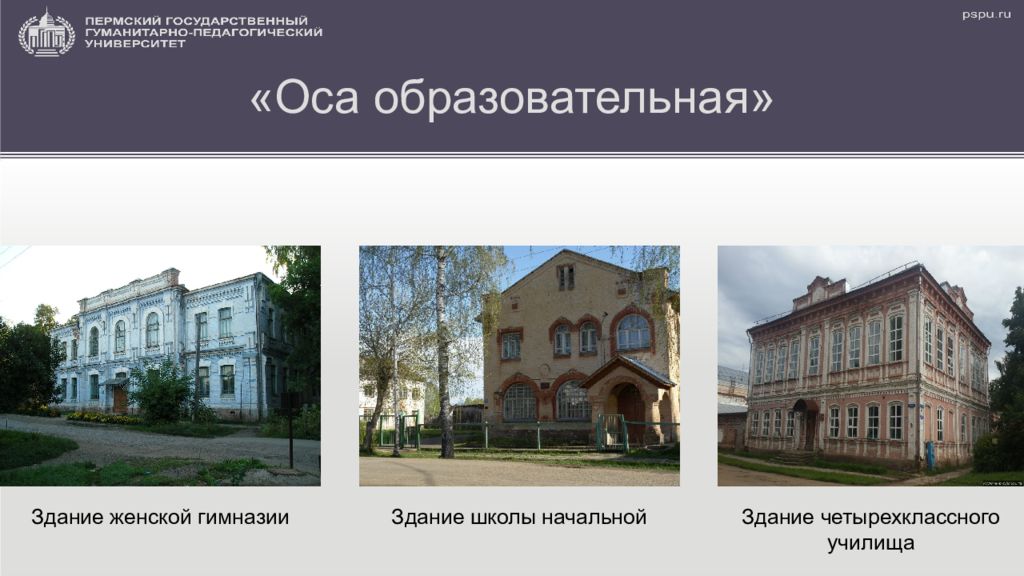 Здание женской гимназии Здание школы начальной Здание четырехклассного училища