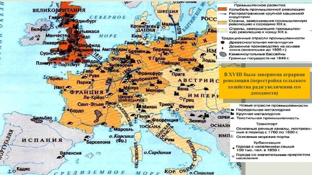 В XVIII была завершена аграрная революция (перестройка сельского хозяйства ради увеличения его доходности)
