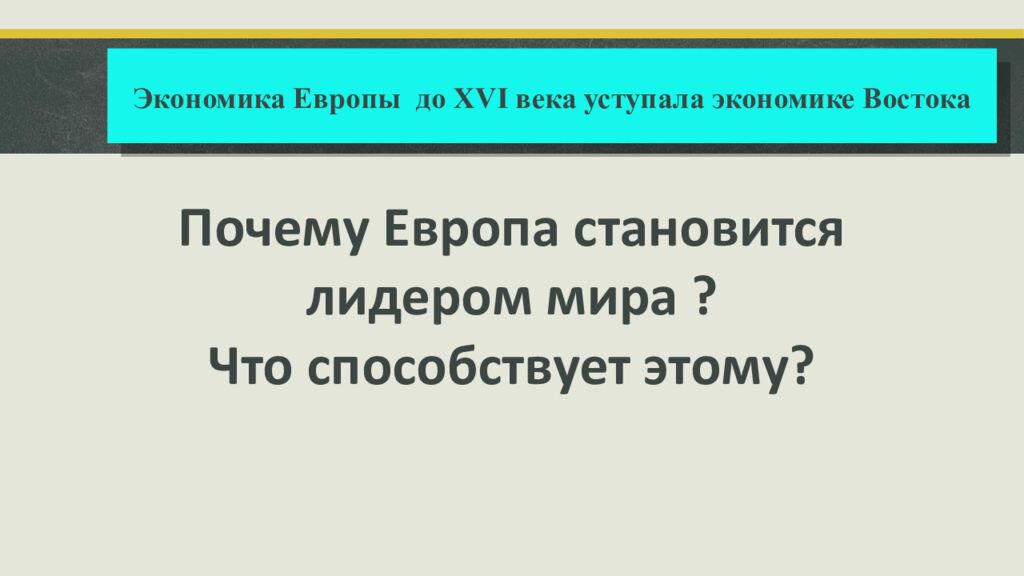 Почему Европа становится лидером мира ? Что способствует этому? Экономика Европы до XVI века уступала экономике Востока