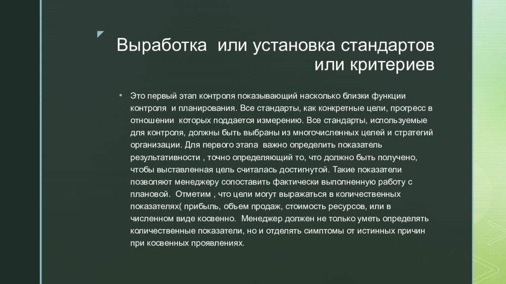 Слайд 11: Выработка или установка стандартов или критериев