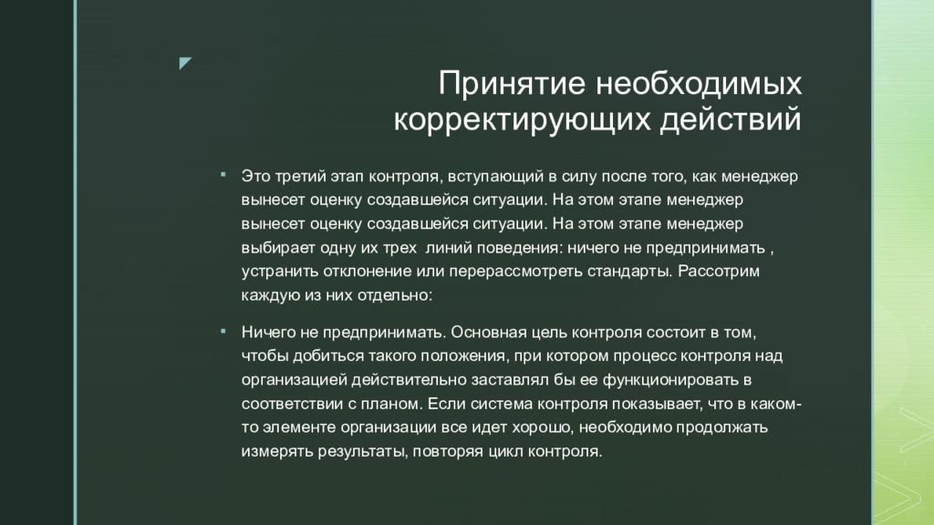 Слайд 16: Принятие необходимых корректирующих действий