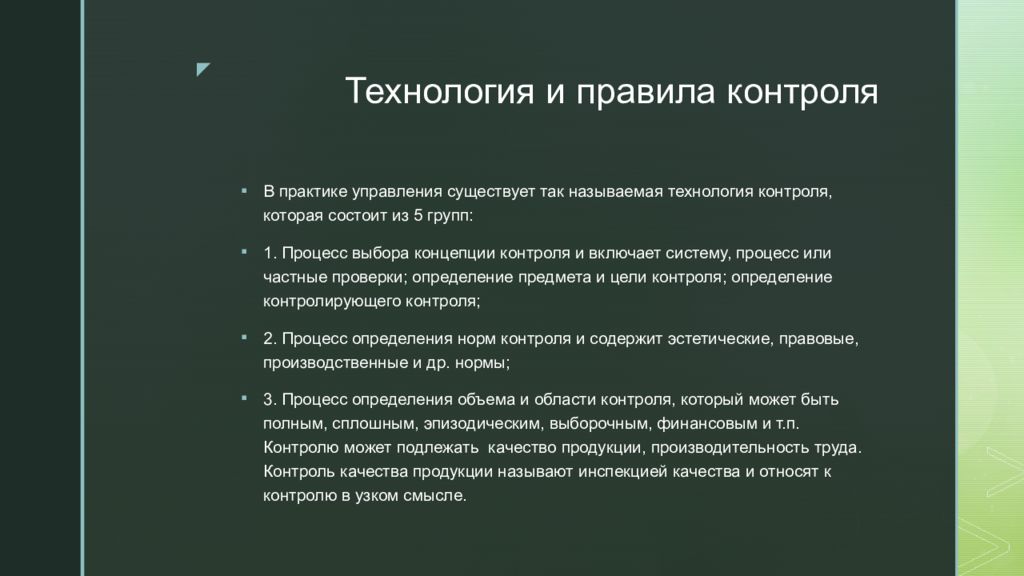 Слайд 18: Технология и правила контроля