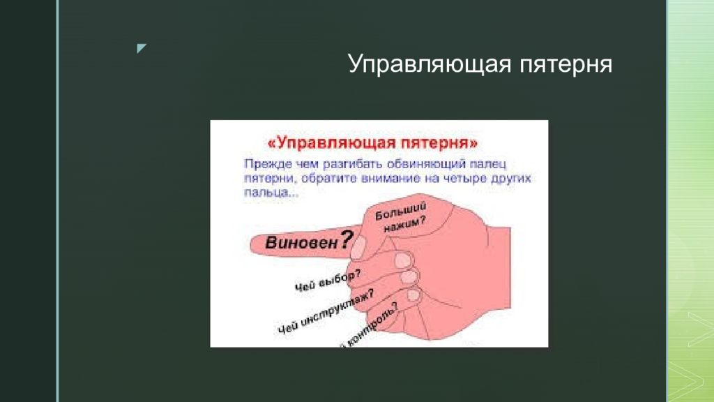 Последний слайд презентации: Контроллинг как инструмент управления: Управляющая пятерня