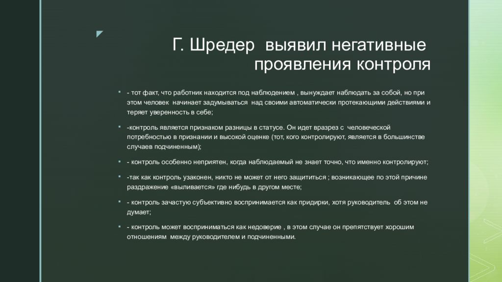 Слайд 20: Г. Шредер выявил негативные проявления контроля
