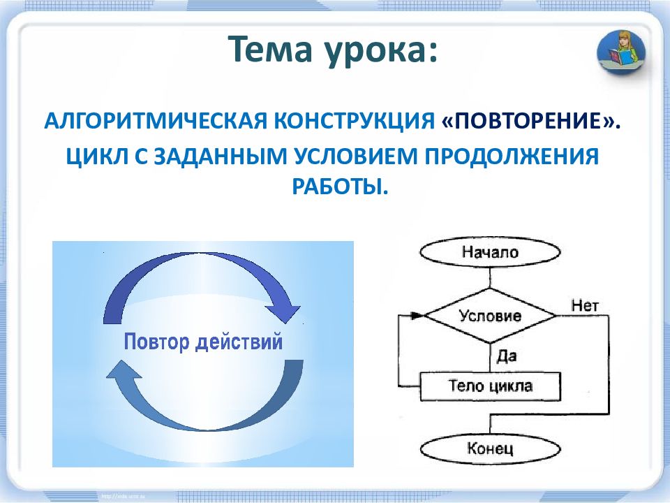 Алгоритмическая конструкция «повторение». Цикл с заданным условием продолжения работы.