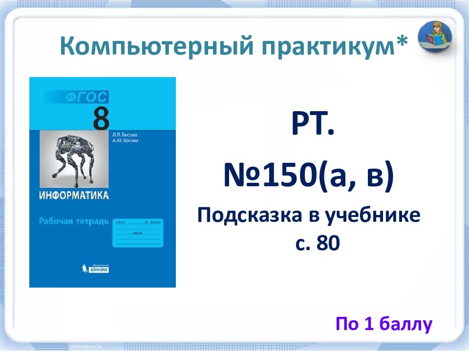 РТ. №150(а, в) Подсказка в учебнике с. 80 По 1 баллу