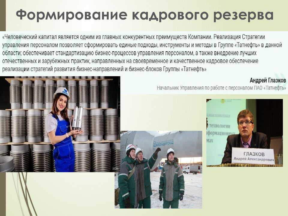 Политика управления персоналом ПАО «Татнефть» в области привлечения и отбора персонала осуществляется в рамках стратегического планирования человеческих ресурсов. Компания приветствует сотрудников, которые: обладают необходимыми для работы знаниями и навыками; имеют профильное среднее и высшее профессиональное образование, две и более профессии; заинтересованы в интенсивной работе, профессиональном и карьерном росте; ориентированы на результат и высокое качество; умеют работать в команде и стремящихся поддерживать командный дух; энергичны, целеустремлены и ответственны; бережно относятся к людям и имуществу Компании; стремятся к саморазвитию и совершенствованию; проявляют заботу о земле.