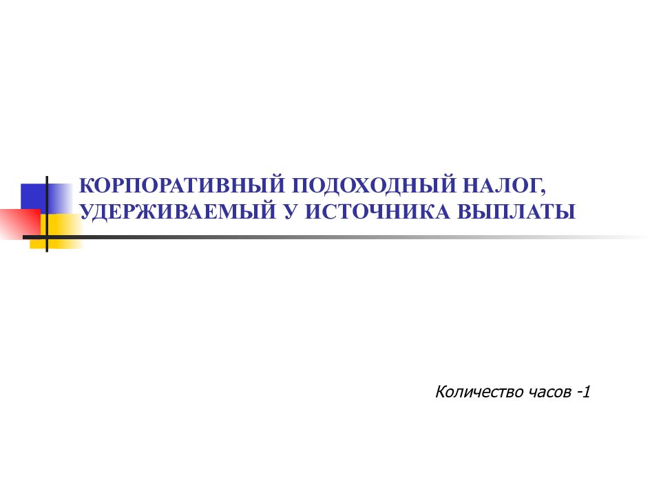 Первый слайд презентации: КОРПОРАТИВНЫЙ ПОДОХОДНЫЙ НАЛОГ, УДЕРЖИВАЕМЫЙ У ИСТОЧНИКА ВЫПЛАТЫ
