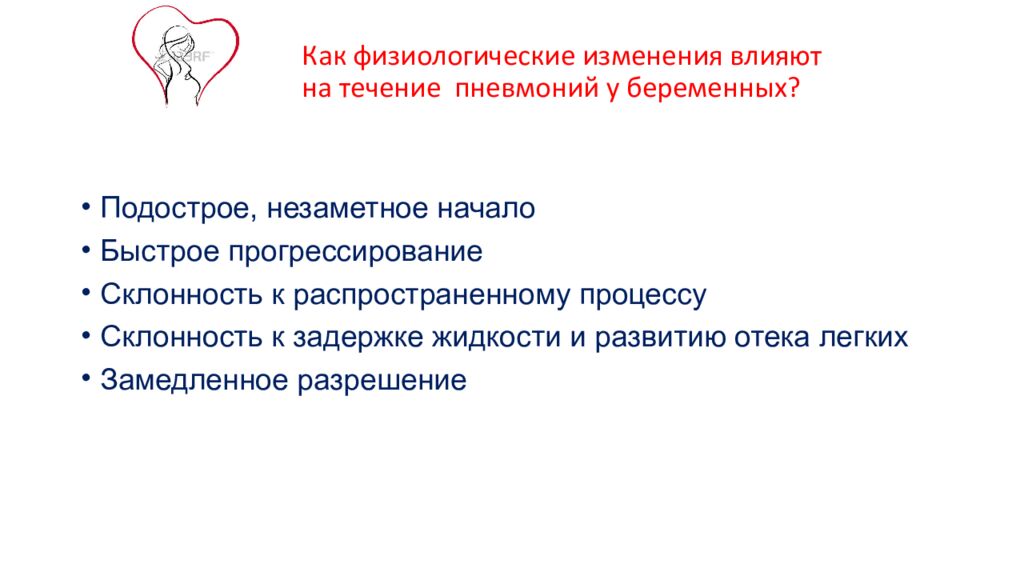 Слайд 35: Как физиологические изменения влияют на течение пневмоний у беременных?