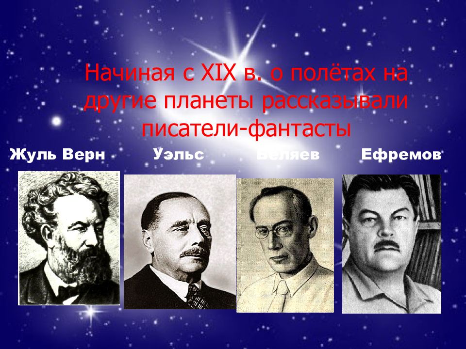 Слайд 3: Начиная с Х I Х в. о полётах на другие планеты рассказывали писатели-фантасты