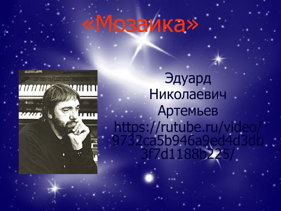 Эдуард Николаевич Артемьев https://rutube.ru/video/9732ca5b946a9ed4d3db3f7d1188b225/