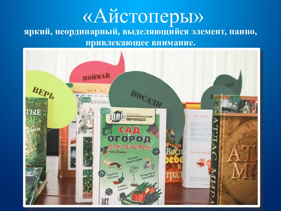 яркий, неординарный, выделяющийся элемент, панно, привлекающее внимание. « Айстоперы »