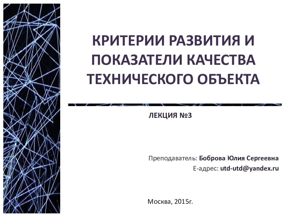Первый слайд презентации: КРИТЕРИИ РАЗВИТИЯ И ПОКАЗАТЕЛИ КАЧЕСТВА ТЕХНИЧЕСКОГО ОБЪЕКТА