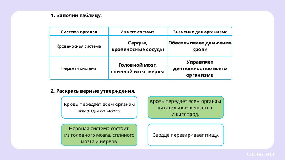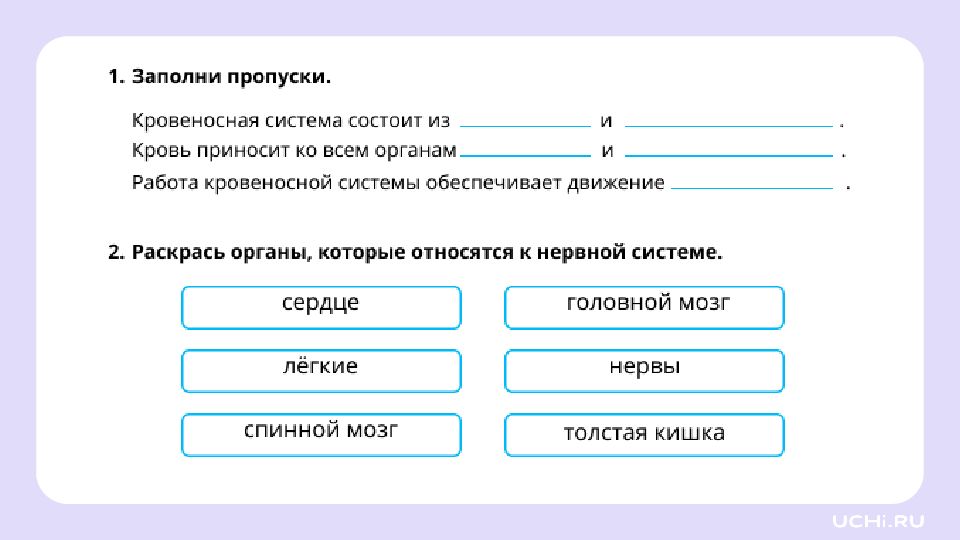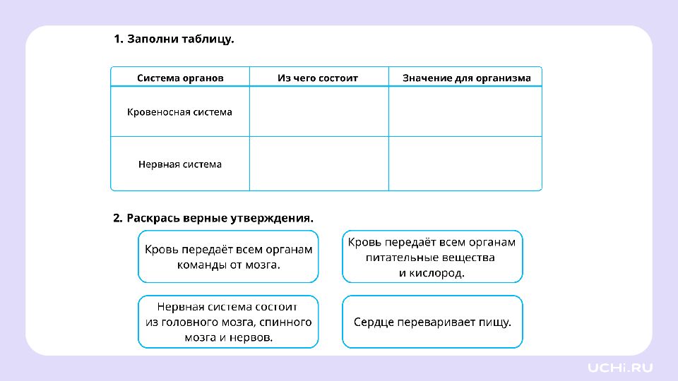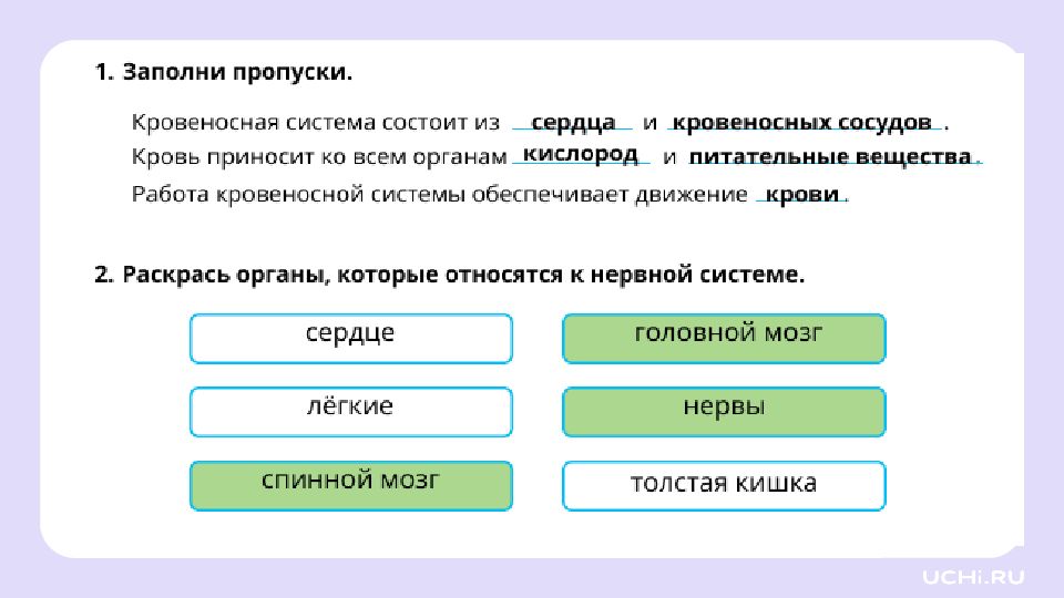 Кровеносная и нервная система и её роль в жизни человека 3 класс