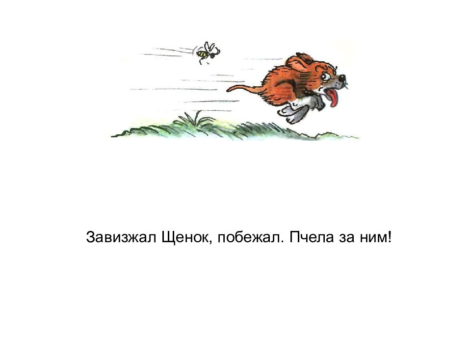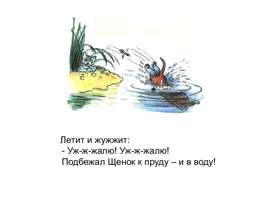 Летит и жужжит: - Уж-ж-жалю! Уж-ж-жалю! Подбежал Щенок к пруду – и в воду!