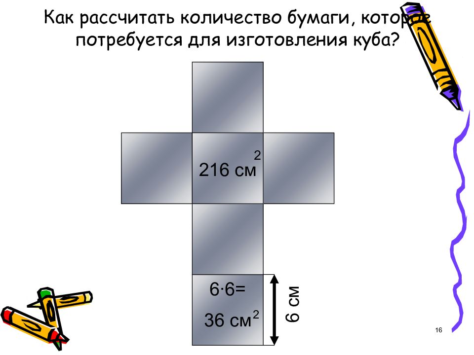 Слайд 16: Как рассчитать количество бумаги, которое потребуется для изготовления куба?