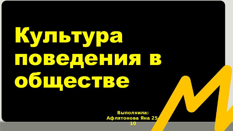 Культура поведения в обществе Выполнила: Афлятонова Яна 25-10