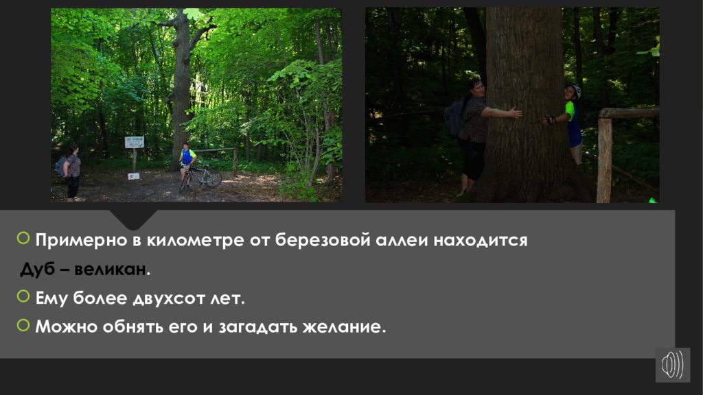 Примерно в километре от березовой аллеи находится Дуб – великан. Ему более двухсот лет. Можно обнять его и загадать желание.