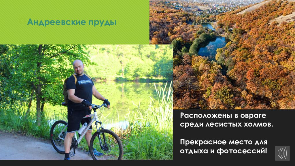 Андреевские пруды Расположены в овраге среди лесистых холмов. Прекрасное место для отдыха и фотосессий!
