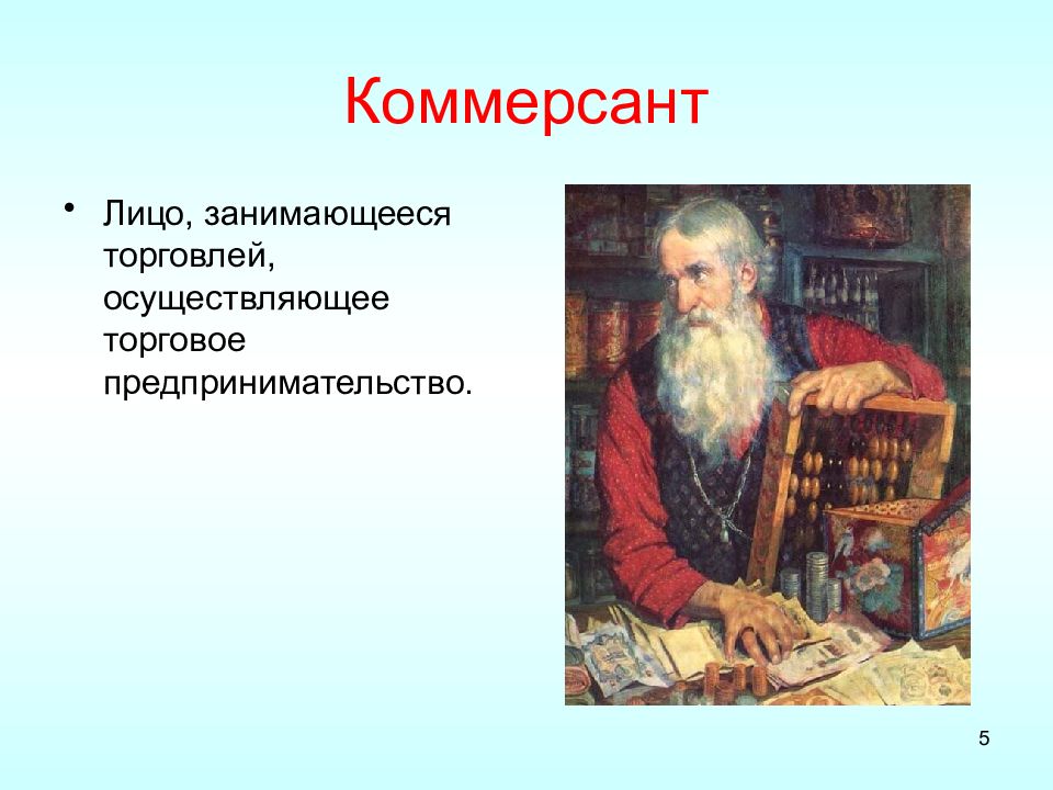 Лицо, занимающееся торговлей, осуществляющее торговое предпринимательство. 5