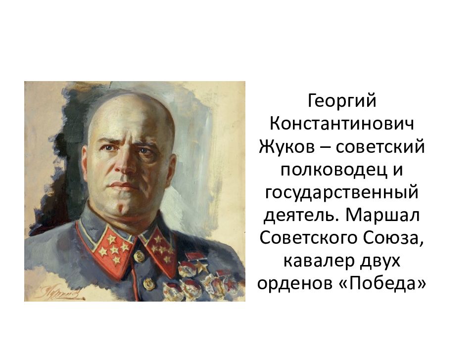 Георгий Константинович Жуков – советский полководец и государственный деятель. Маршал Советского Союза, кавалер двух орденов «Победа»