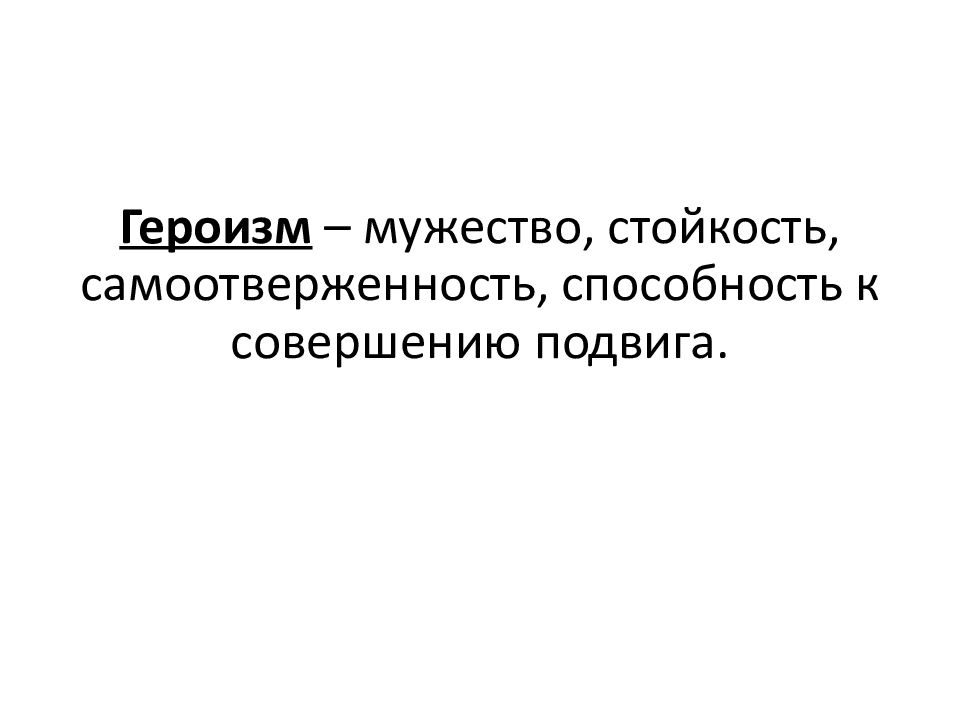 Героизм – мужество, стойкость, самоотверженность, способность к совершению подвига.