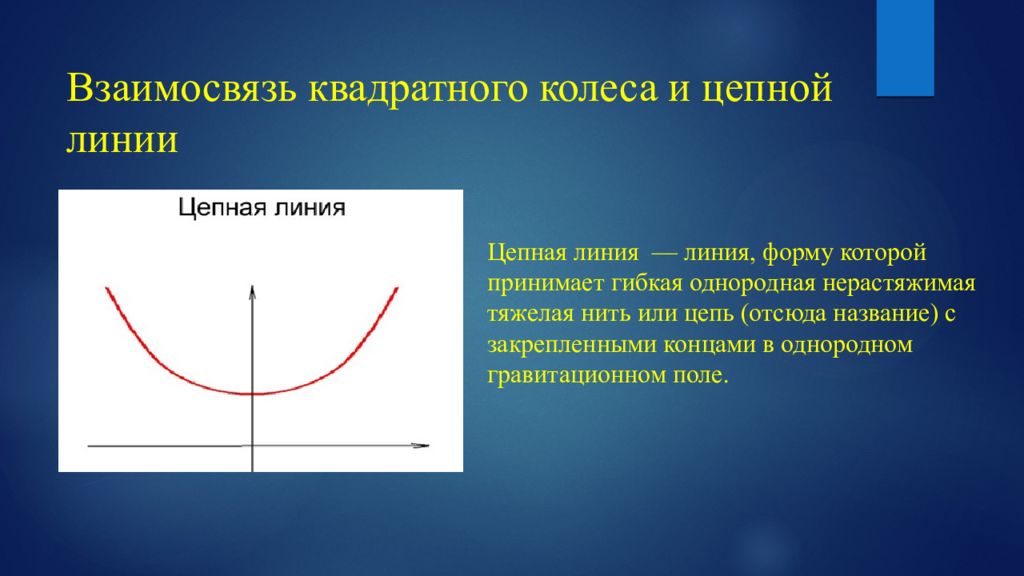 Слайд 4: Взаимосвязь квадратного колеса и цепной линии