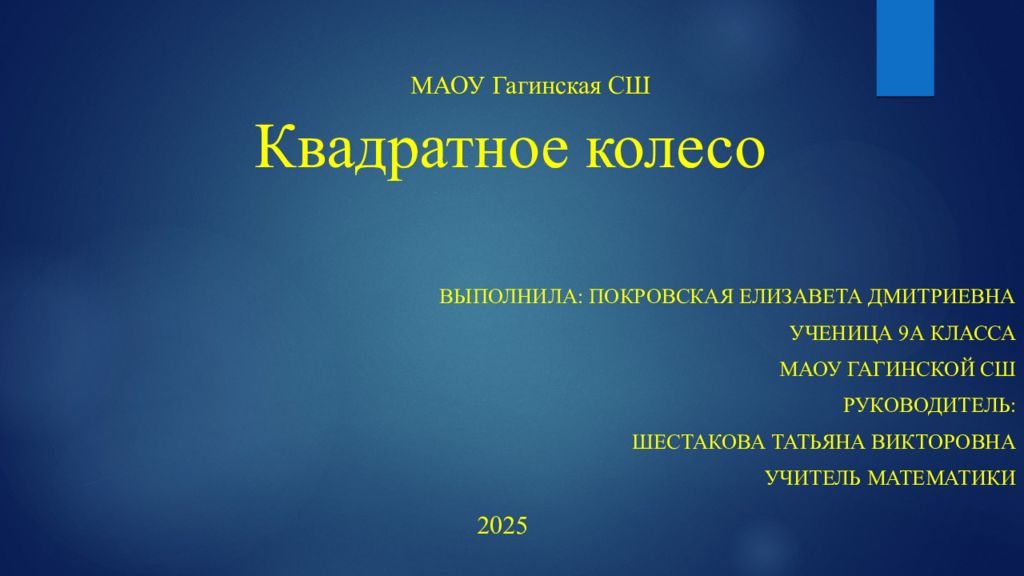 Выполнила: Покровская Елизавета Дмитриевна ученица 9а класса Маоу гагинской сш Руководитель: Шестакова Татьяна Викторовна у читель математики МАОУ Гагинская СШ 2025