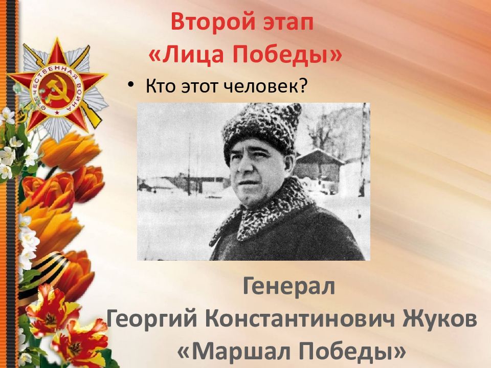 Кто этот человек? Второй этап «Лица Победы» Генерал Георгий Константинович Жуков «Маршал Победы»