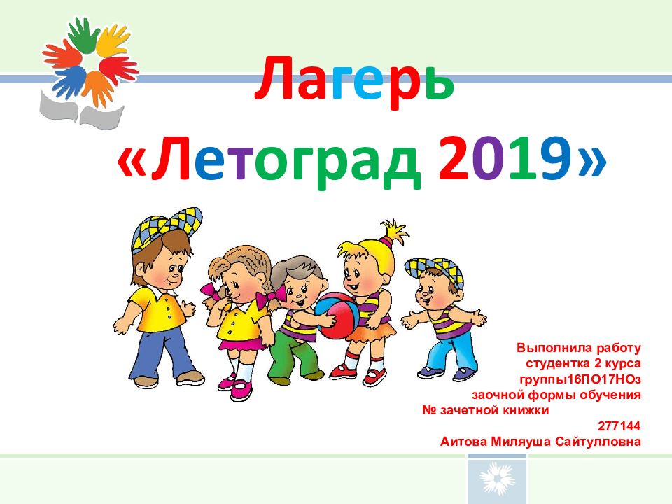 Первый слайд презентации: Ла ге р ь «Л е т оград 2 0 1 9»