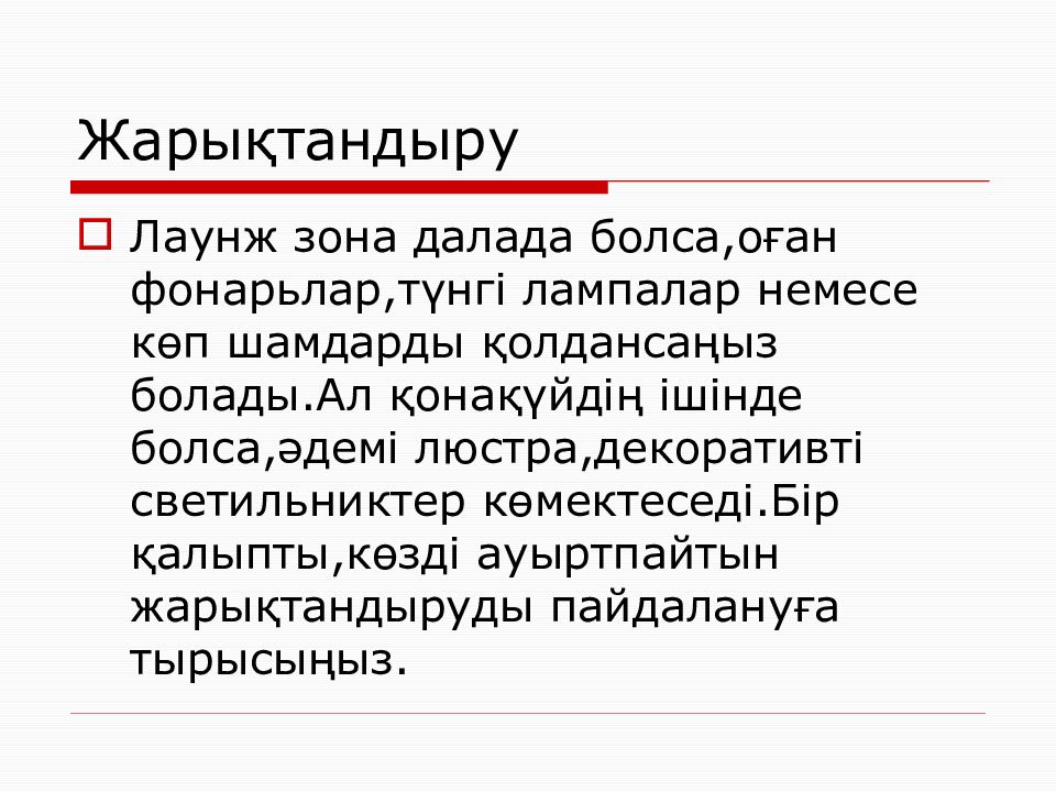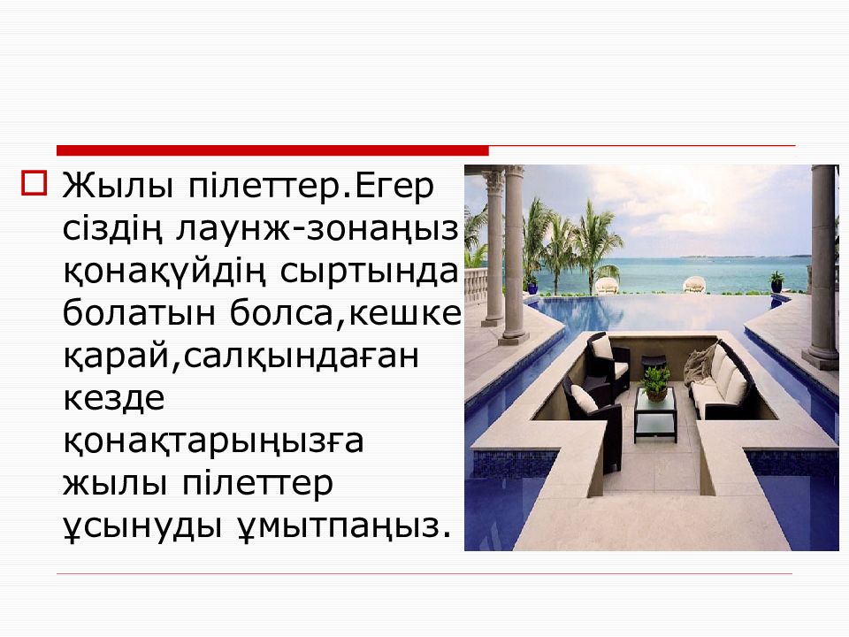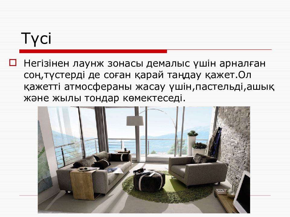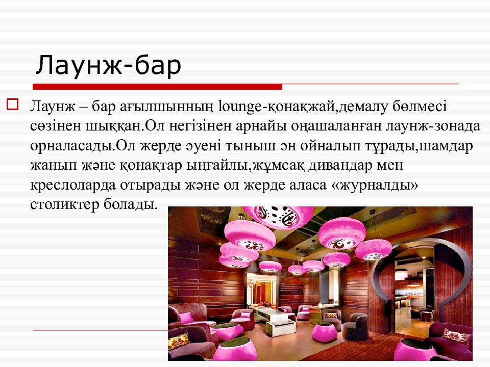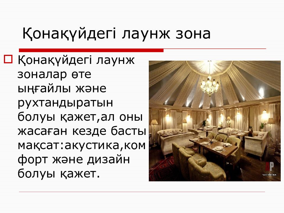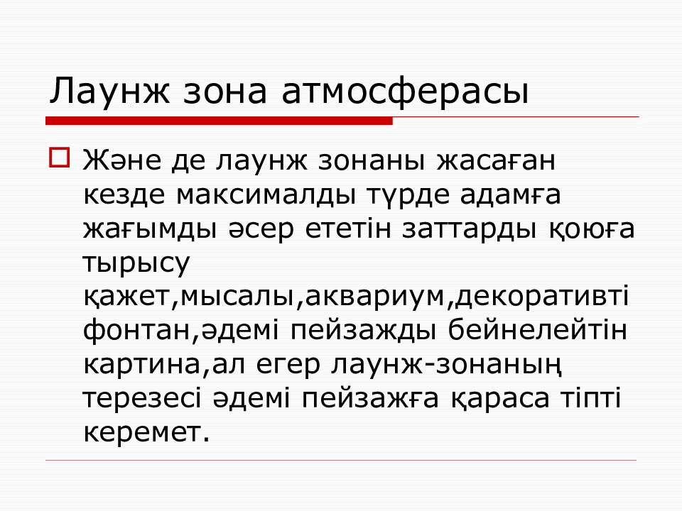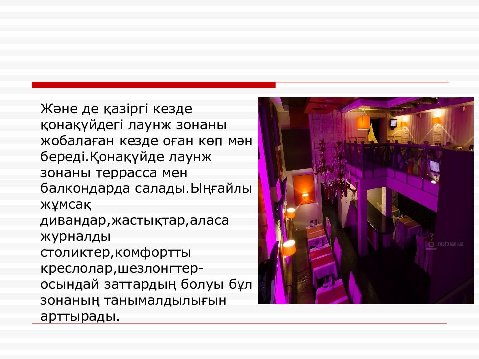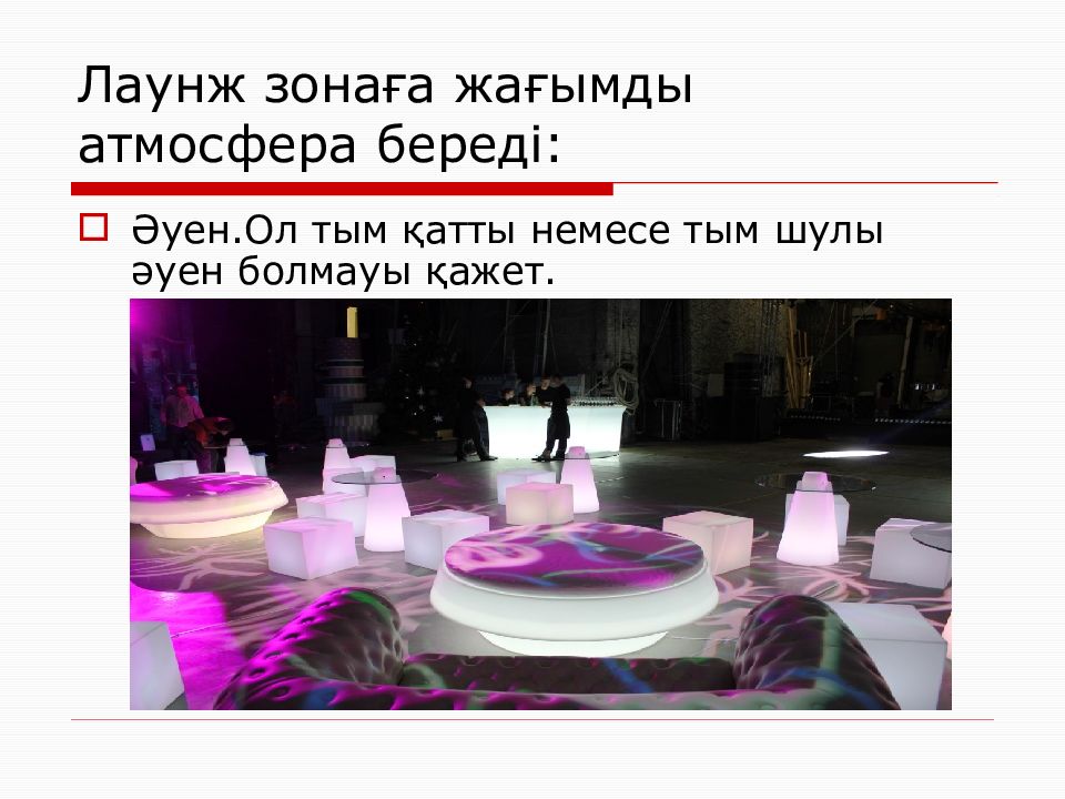 Слайд 10: Лаунж зонаға жағымды атмосфера береді: