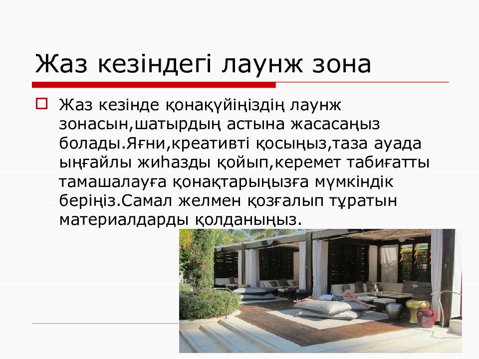 Слайд 8: Лаунж зона кез-келген жағдайда