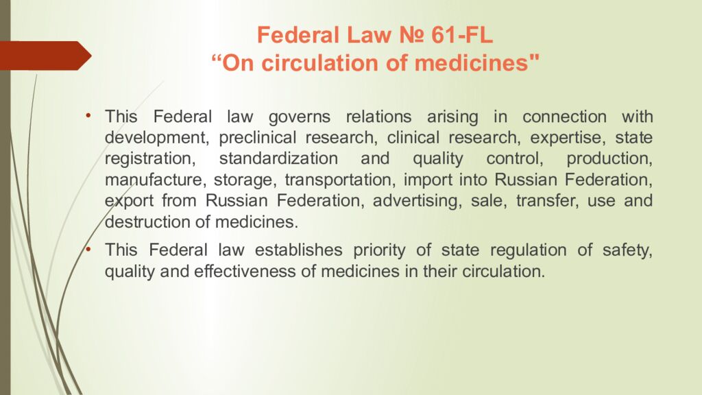 Слайд 11: Federal Law № 61-FL “On circulation of medicines"