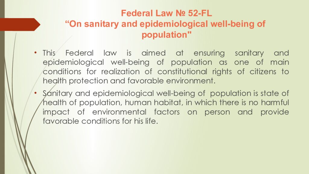 Слайд 10: Federal Law № 52-FL “On sanitary and epidemiological well-being of population"