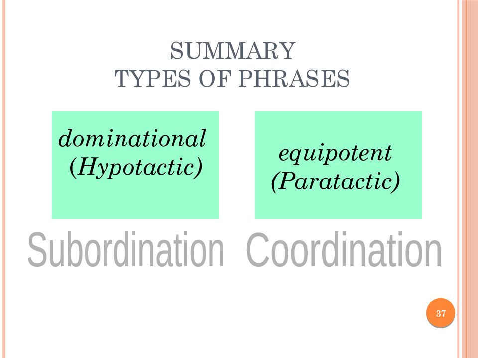 dominational ( H ypotactic) Coordination equipotent (Paratactic ) Subordination 37